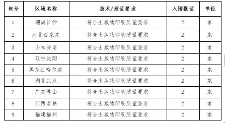 三、征集項(xiàng)目簡(jiǎn)介:根據(jù)《中南出版?zhèn)髅郊瘓F(tuán)股份有限公司采購管理辦法(試行)》文件精神,從本年度開始,報(bào)社印刷業(yè)務(wù)采用框架協(xié)議采購方式,包一:2家服務(wù)單位、包二:2家服務(wù)單位、包三:2家服務(wù)單位、包四:2家服務(wù)單位、包五:2家服務(wù)單位、包六:2家服務(wù)單位、包七:2家服務(wù)單位、包八:2家服務(wù)單位、包九:2家服務(wù)單位。本項(xiàng)目征集人為湖南快樂老人傳媒有限公司(以下簡(jiǎn)稱“征集人”)根據(jù)征集結(jié)果實(shí)施采購,承擔(dān)框架協(xié)議和采購合同的簽訂與執(zhí)行。
