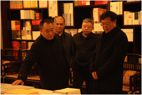 在文藝社,張嚴局長翻閱了該社出版的精品圖書,高度肯定了《延安文藝大系》、《中國歷代辭賦總匯》等重點出版工程,要求進一步學習貫徹黨的十九大精神以及習總書記關于文藝創作的重要指示,圍繞改革開放40年等重大節點,策劃推出一批重點圖書,推動文藝出版既有高原又有高峰。